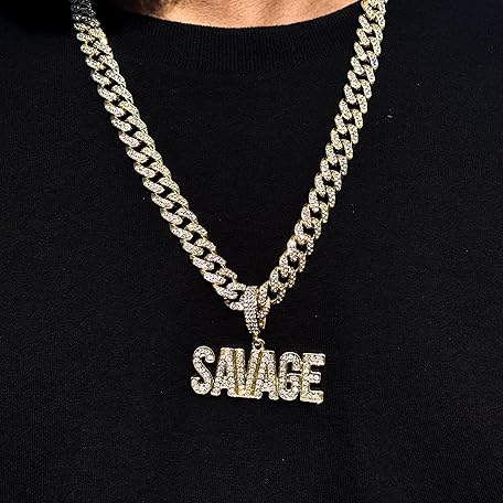 Techno Pave Men's Iced-Out Pendant Necklace – 24-Inch Chain, Hip-Hop Streetwear Jewelry