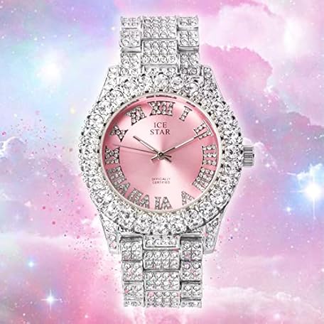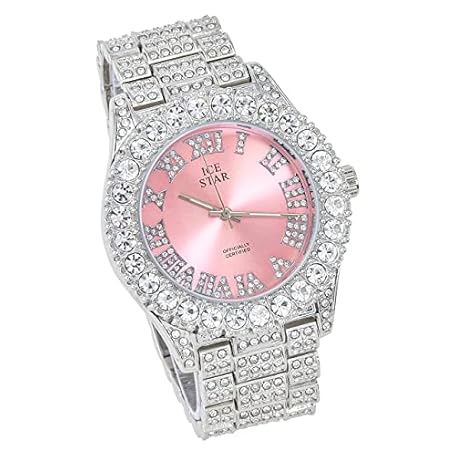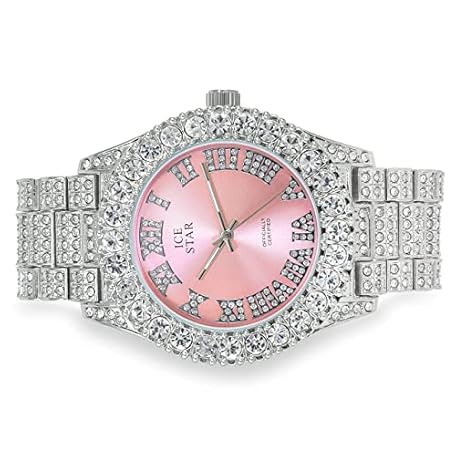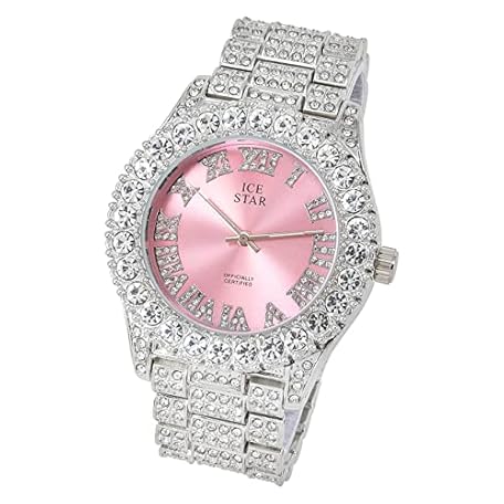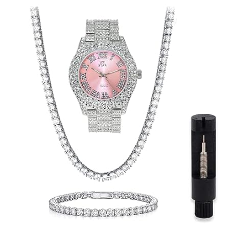 • Techno Pave Womens 44mm Iced Solitaire Bezel Watch and Chain & Bracelet Set