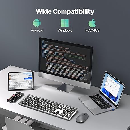 TECKNET Bluetooth Keyboard Rechargeable, 4-Device Free Switching (2.4G+BT), Ultra-Slim Full Size Wireless Keyboard, Quiet Typing, for PC/Laptop/Smart TV/Phone, Adjustable Stand, 12 Multimedia Keys