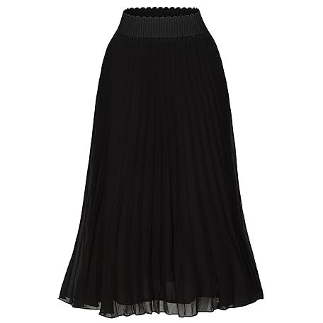 • TEERFU Womens Chiffon High Waist Skirt Pleated A-Line Swing Elastic Shirring Midi Length