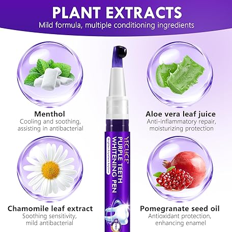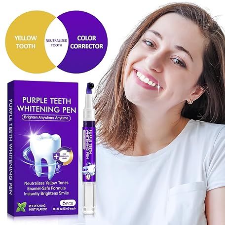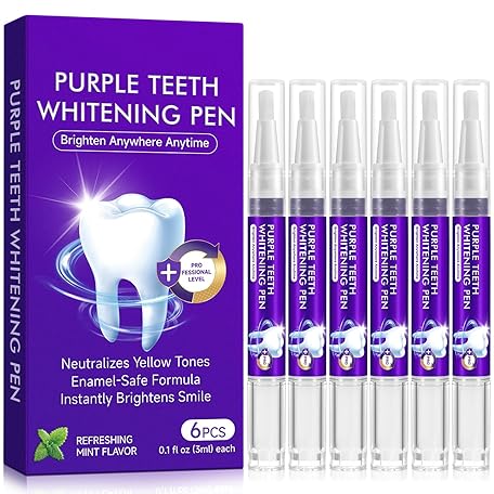 Teeth Whitening Pen 6 Pack, Professional Purple Teeth Whitening Gel for Rapid Stain Removal, No Sensitivity Formula for Sensitive Teeth, Mint Fresh Breath