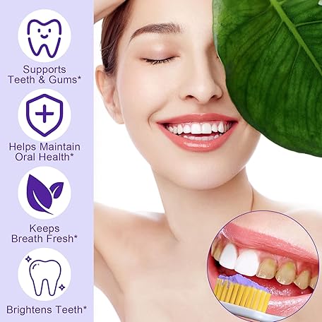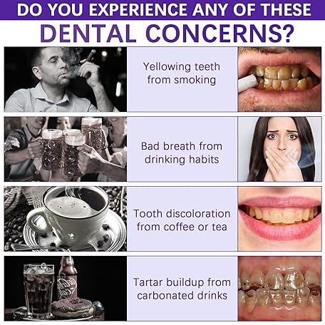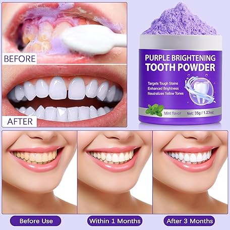 • Teeth Whitening Powder - Purple Brightening Powder - Removes Stains, No Sensitivity - Toothpaste Power - for Coffee, Tea and Food Stains - Fresh Mint Flavor, Breath Freshener - 35g