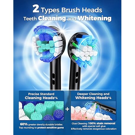 Thông tin sản phẩm TEETHEORY Rotating Electric Toothbrush for Adults with 8 Brush Heads (2 Types), 4 Modes Deep Clean Electric Toothbrush with Rechargeable Power and 2 Min Smart Timer (1- Black, p1)