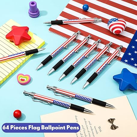 Tenare 64 Pcs American Flag Ballpoint Pen Veterans Day Themed 1.0 mm Black Ink USA Patriotic Gel Ink Pen for Writing and Signing, Home School Office Supplies Party(Patriotic)