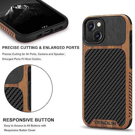 Thương hiệu TENDLIN là cái tên nổi tiếng được rất nhiều khách hàng trên thế giới chọn lựa. Với kiểu dáng đẹp mắt, sang trọng, sản phẩm TENDLIN Compatible with iPhone 13 Case Wood Grain with Carbon Fiber Texture Design Leather Hybrid Case Compatible for iPhone 13 6.1-inch Released in 2021 Black là sự lựa chọn hoàn hảo nếu bạn đang tìm mua một món cho riêng mình.