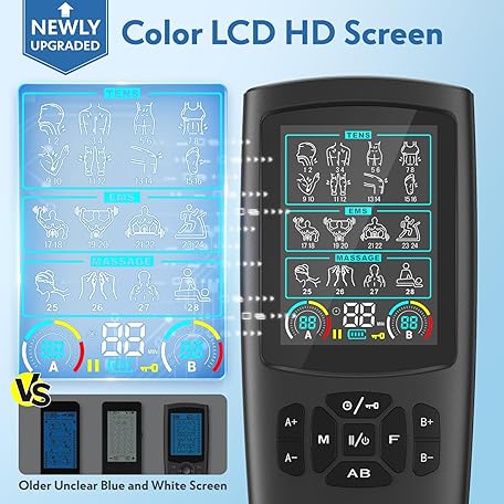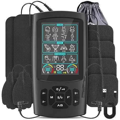 Thông tin sản phẩm TENS & EMS Muscle Stimulator with 28 Modes, Dual Channel Muscle Stimulator Machine with 8PCS Electrode Pads, for Muscle Relief, Shoulder, Neck, Back, New Upgraded Color Screen