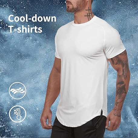 TEZO Mens Gym Workout Slim Fit Short Sleeve T-Shirt Cotton Performance Athletic Shirts Running Fitness Tee Loungewear