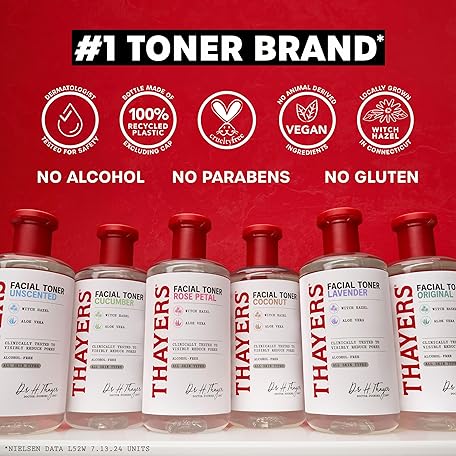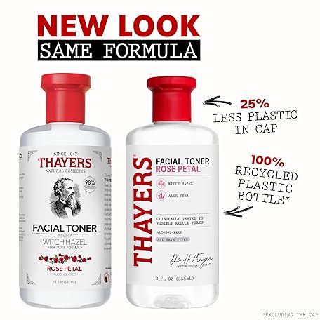 Thông tin sản phẩm THAYERS Alcohol-Free Rose Petal Witch Hazel Facial Toner for Glowing Skin, Soothing, Hydrating, Refreshing Toner for All Skin Types, 12oz (Packaging May Vary)
