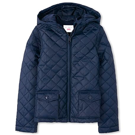 The Children's Place girls Zip Up Quilted Hooded Jacket