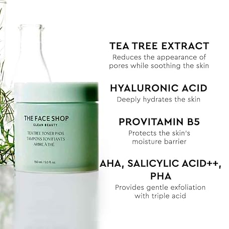 Thông tin sản phẩm The Face Shop Tea Tree Toner Pads - Improve Uneven Skin Tone, Pore Minimizer - Exfoliating Dual Sided Toner Pad - AHA, BHA, PHA, Hyaluronic Acid - Cotton Facial Pad - Korean Toner - Korean Skin Care