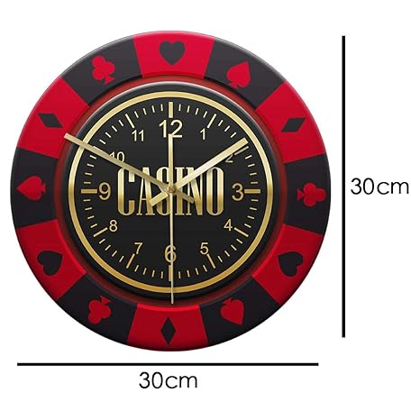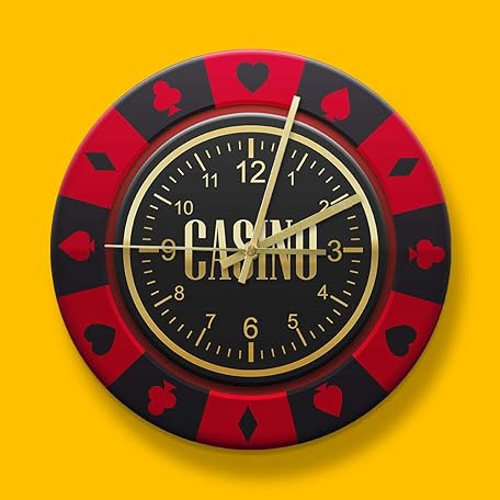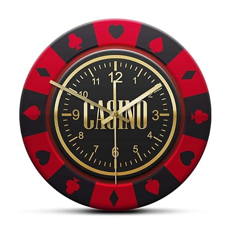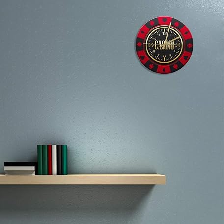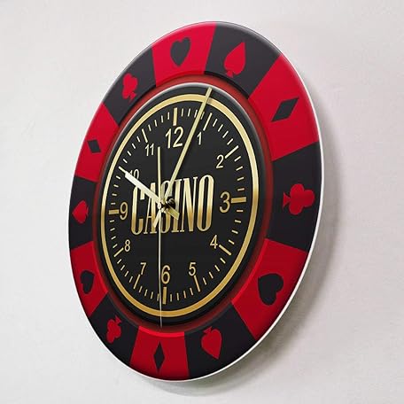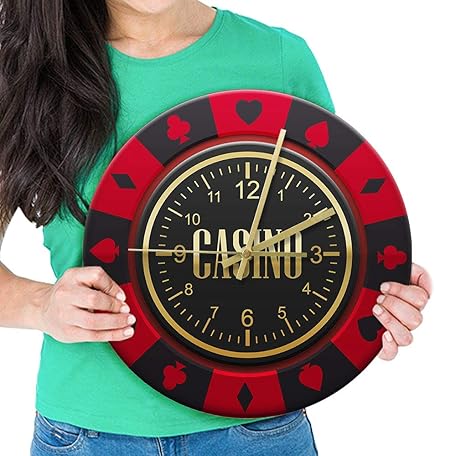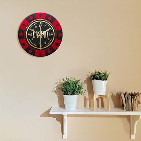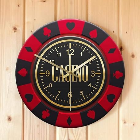 The Geeky Days Gamble Chip Printed Battery Operated Wall Clock Roulette Tournament Chip Design Hanging Silent Non-Ticking Clocks Watch for Pub Club Casino Wall Decor