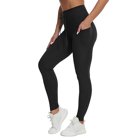 THE GYM PEOPLE Women's High Waist Drawstring Stretchy Workout Leggings Ultra Soft Tummy Control Yoga Pants with Pockets