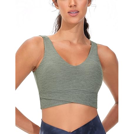 THE GYM PEOPLE Women's Padded Sports Bra V-Neck Wireless Stretchy Workout Crop Tops with Cross Hem Soft Yoga Bras