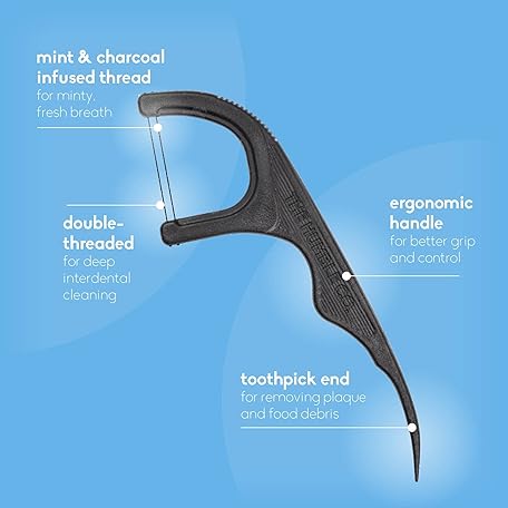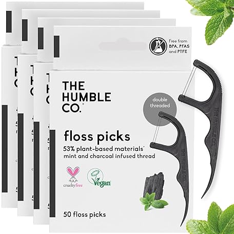 Thông tin sản phẩm The Humble Co. Floss Picks (200 Count) – Plant Based Dental Floss Picks for Superior Oral Care, Dental Hygiene, and Gum Health, Cruelty Free Tooth Floss Picks (Charcoal, Double Thread)