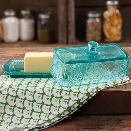 Sản phẩm The Pioneer Woman Adeline Glass Butter Dish - Teal đang được bán với giá ưu đãi là $35.3051 tại nước Mỹ.