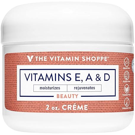 The Vitamin Shoppe Vitamin E, A and D Crème, Moisturizes and Rejuvenates, Apply After Cleansing to Damp Skin Daily (2 Ounces Cream)