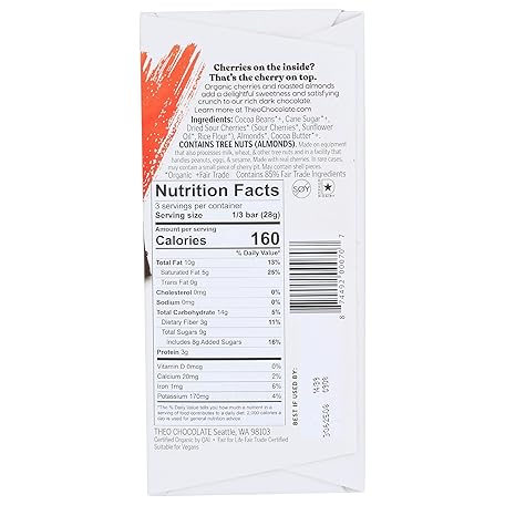 Thông tin sản phẩm Theo Cherry Almond Organic Dark Chocolate Bar, 70% Cacao, 1 Bar | Vegan, Fair Trade