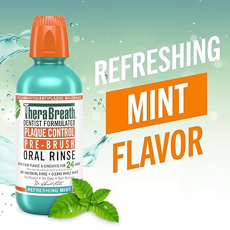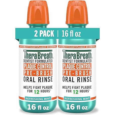 Thông tin sản phẩm TheraBreath Plaque Control Pre-Brush Oral Rinse, Refreshing Mint Flavor, Antigingivitis and Antiplaque Rinse, Dentist Formulated, Alcohol Free, 16 Fl Oz (Pack of 2)