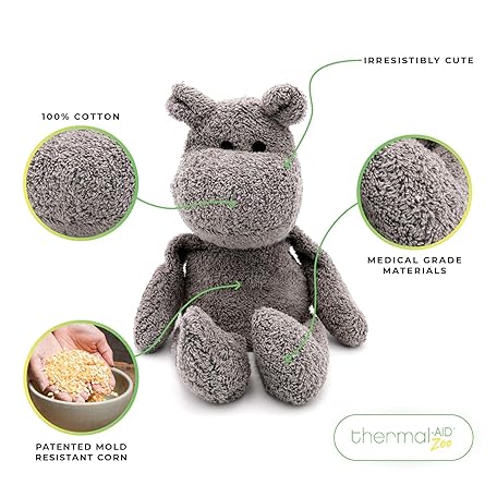 Thermal-Aid Zoo Animals - Mini Happy The Hippo - Heatable Therapeutic Stuffed Animals for Kids - Hot & Cold Therapy - Ice Pack & Heating Pack - 3.15 x 2.6 x 9.3 in