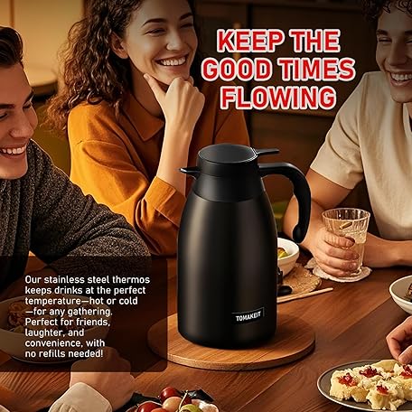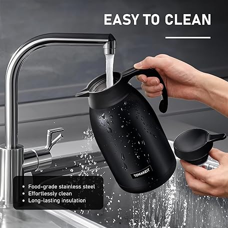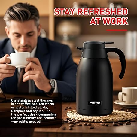 Thermal Coffee Carafe 2L/68 Oz Double-Wall Vacuum 304 Stainless Steel Insulated Thermoses Flask, 24-Hour Keeps Hot/Cold, Leak-Proof, for Travel, Work, Outdoor, BPA-Free, Easy to Clean