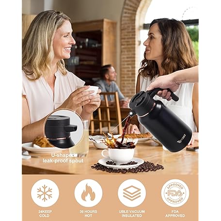 Thông tin sản phẩm Thermal Coffee Carafe 70 oz - 36 Hour Hot Stainless Steel Carafes for Hot Liquids-Insulated Coffee Carafes For Keeping Hot/Cold Coffee, Tea, Water,Milk, Creamer Dispenser for Coffee Bar(Black)