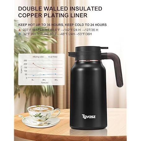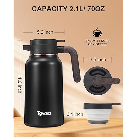 Thương hiệu Tgvasz là cái tên nổi tiếng được rất nhiều khách hàng trên thế giới chọn lựa. Với kiểu dáng đẹp mắt, sang trọng, sản phẩm Thermal Coffee Carafe 70 oz - 36 Hour Hot Stainless Steel Carafes for Hot Liquids-Insulated Coffee Carafes For Keeping Hot/Cold Coffee, Tea, Water,Milk, Creamer Dispenser for Coffee Bar(Black) là sự lựa chọn hoàn hảo nếu bạn đang tìm mua một món cho riêng mình.