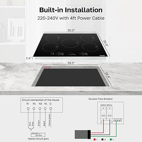 Thông tin sản phẩm thermomate 30 Inch Induction Cooktop, 9000W Built in Induction Stove Top, Electric Cooktop with 5 Boost Burner, 9 Heating Level, Timer & Child Safety Lock, Sensor Touch Control, 240V