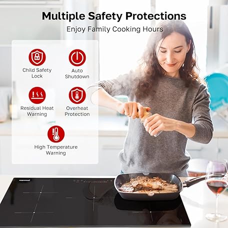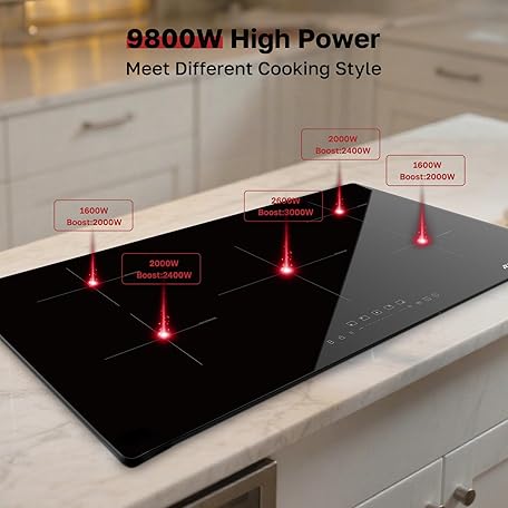 Thông tin sản phẩm thermomate 36 Inch Induction Hob Electric Cooktop, 9800W Built in Induction Stove Top with 5 Boost Burners, 9 Heating Levels, Timer & Child Safety Lock, Sensor Touch Control, 240V