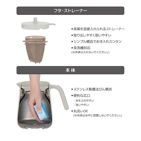 Thông tin sản phẩm Thermos TTE-700 LGY Vacuum Insulated Teapot with Strainer, 23.7 fl oz (700 ml), Light Gray