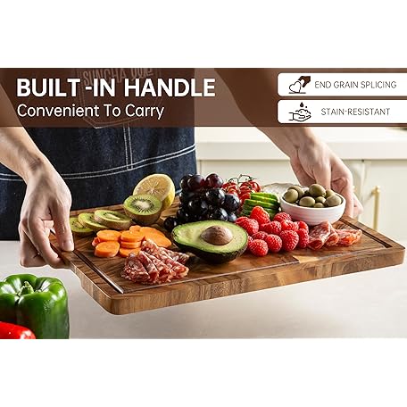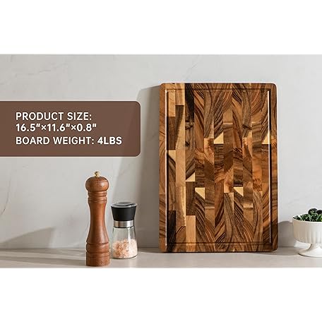 THETCHRY Walnut Wood Cutting Board for Kitchen, End Grain Chopping Board with Juice Groove, Heavy Duty Checkered Board for Cheese and Vegetables, Non-slip Feet 16.5" x 11.6" x 0.8"