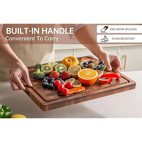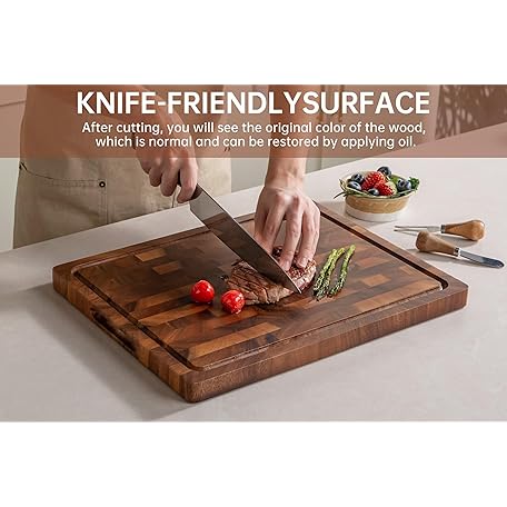 Thông tin sản phẩm THETCHRY Walnut Wood Cutting Boards for Kitchen, Large Chopping Board Double Sided, End Grain Cutting Board with Handle, Charcuterie Butcher Block for Meal Prep & Serving with Gift Box, 17"×13"×1"