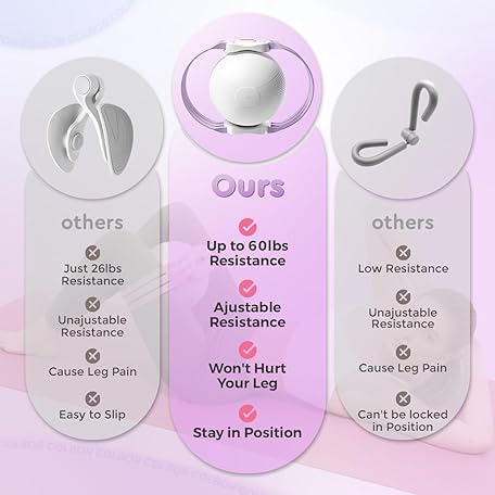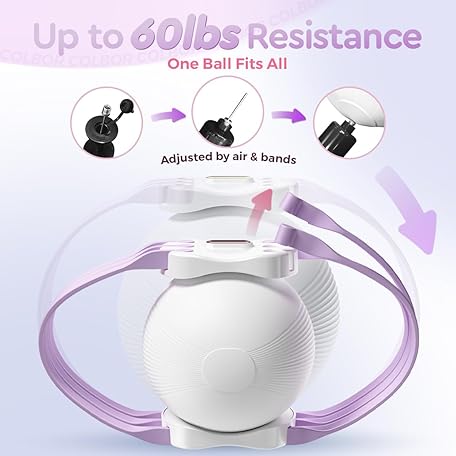 Thông tin sản phẩm Thigh Trainer Ball, 10-60lb Adjustable Inflatable Pelvic Floor Muscle Exerciser, Inner Thigh Kegel Workout Equipment for Women Men, Foldable & Portable Home Fitness for HIPS Butt Legs(Violeta)