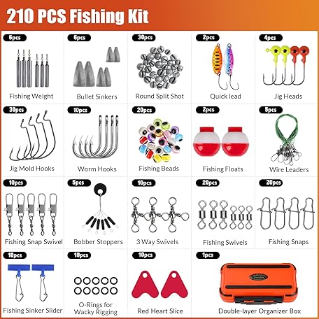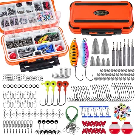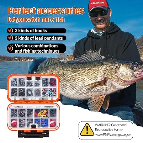 THKFISH 210pcs Fishing Accessories Kit, Double-layer Organized Fishing Tackle Box with Tackle Included Fishing Hooks, Weights Sinkers, Bass Trout Fishing Gear