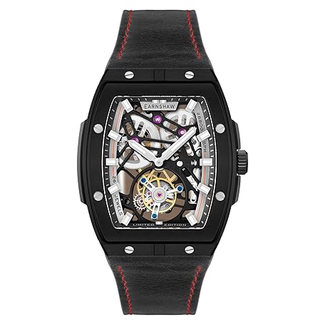 Thomas Earnshaw Men's 42mm Invincible Silvermechanical Skeleton Watch with Leather Strap ES-8281