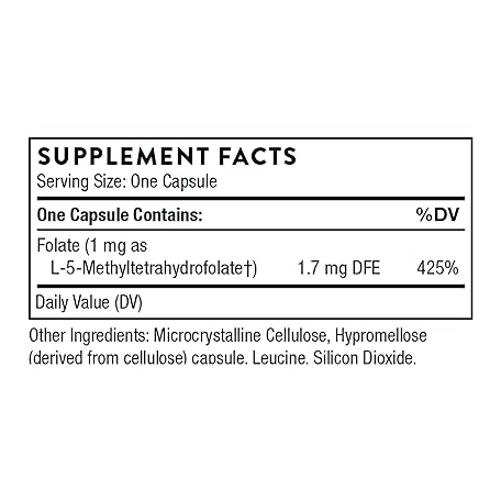 Thông tin sản phẩm THORNE - 5-MTHF - Methylfolate (Active B9 Folate) Supplement - Supports Cardiovascular Health, Fetal Development, Nerve Health, Methylation & Homocysteine Levels* - 60 Servings - 5-MTHF 1mg