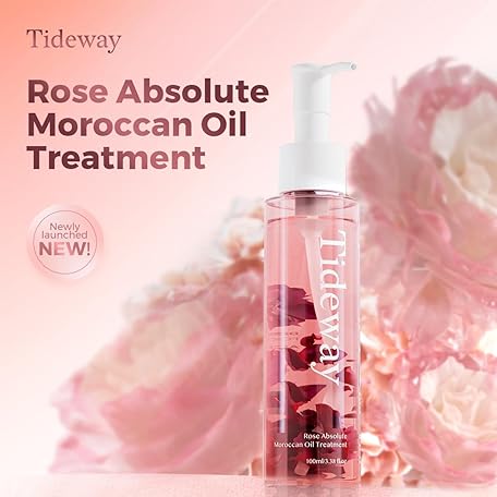 TIDEWAY Rose & Moroccan Hair Oil – Nourishing Rose Petal Infusion for Soft, Shiny, Resilient Hair with 6 Plant Oils, 48-Hour Fragrance, Heat & UV Protection