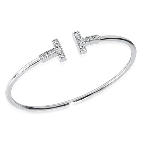 Tiffany & Co., Pre-Loved Tiffany T Wire Bracelet, White Gold, Diamond, 6.5 in