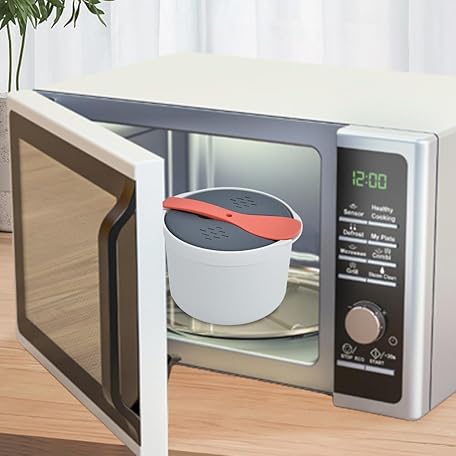 Thông tin sản phẩm Tiiyee Microwave Rice Cooker, 2L Microwaveable Rice Pasta Maker Vegetable Steamer Spoon Lid Strainer Non Stick Steaming Pot Cookware for Home Meal Prep Baking Noodle Dishwasher Safe Cooks Up to 6 Cups