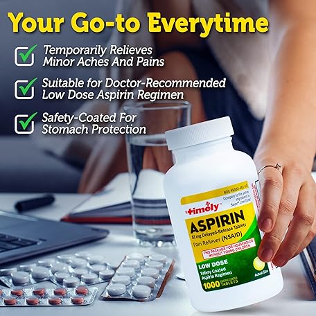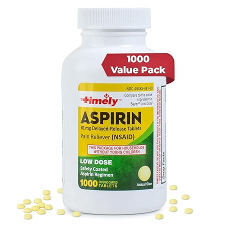 Thông tin sản phẩm TIME-CAP LABS, INC. Timely Baby Aspirin 81mg for Adults - Pain Reliever for Minor Aches & Fever Reducer - Compared to The Active Ingredient in Bayer - Low Dose Enteric Coated Aspirin - 1000 Tablets