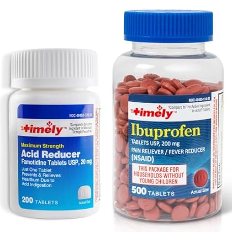 Sản phẩm TIME-CAP LABS, INC. Timely Ibuprofen 200mg (500 Tablets) + Famotidine 20mg Acid Reducer (100 Tablets) - Pain Reliever & 12-Hour Heartburn Relief Medicine Bundle đang được bán với giá ưu đãi là $21.255 tại nước Mỹ.