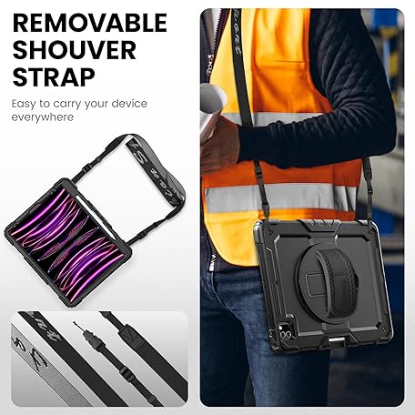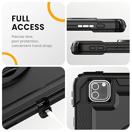 Thông tin sản phẩm Timecity Protective Case for iPad Pro 12.9 inch 6th/ 5th/ 4th/ 3rd Generation, with Strong Protection, Screen Protector, Hand/Shoulder Strap, Rotating Stand, Pencil Holder - Black