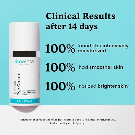 Thông tin sản phẩm Timeless Skin Care Hydrating Eye Cream - 0.5 Fl Oz, Pack of 1 - Reduce Puffiness & Fine Lines - Includes Hyaluronic Acid for Hydration + Matrixyl 3000 to Fight Wrinkles - For All Skin Types