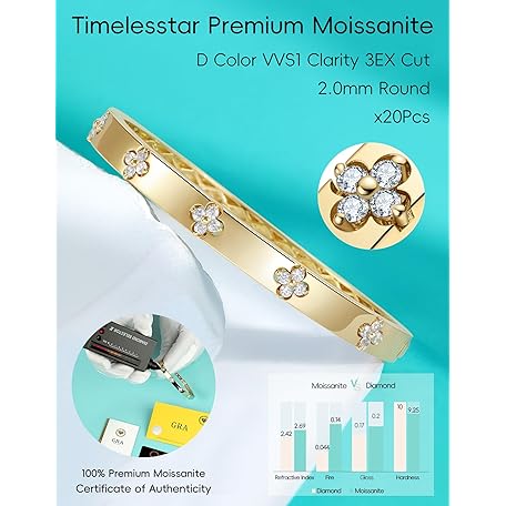 Thương hiệu TIMELESSTAR là cái tên nổi tiếng được rất nhiều khách hàng trên thế giới chọn lựa. Với kiểu dáng đẹp mắt, sang trọng, sản phẩm TIMELESSTAR Clover Bracelets for Women Gifts with Lab-Grown Moissanite or Emerald|S925 Sterling Silver Plated 18K/14K Gold Stackable Non Tarnish là sự lựa chọn hoàn hảo nếu bạn đang tìm mua một món cho riêng mình.