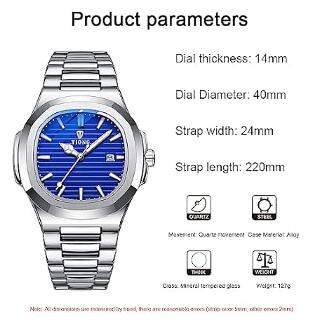 Thông tin sản phẩm Tiong Men's Quartz Watch - Stainless Steel, Waterproof, Date Display, Luminous | Casual & Business with Sleek Design