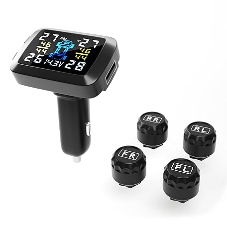 Tire Pressure Monitoring System (TPMS), Plug-and-Play LCD Display with Real-Time Tire Pressure and Temperature, 48s Refresh Rate and Multi-Alarm Alerts, for Cars, SUVs and Trucks, Including 4 Sensors