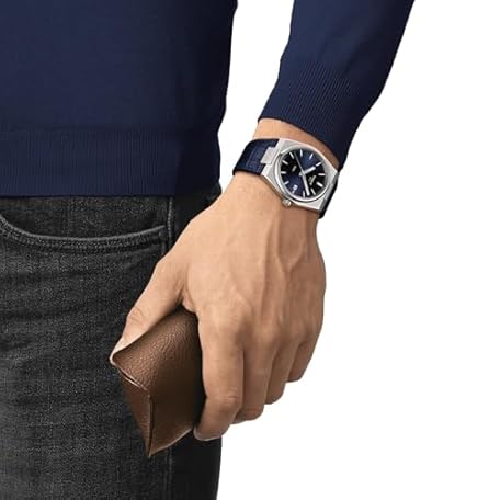 Thông tin sản phẩm Tissot Mens PRX 316L Stainless Steel case Quartz Watch, Blue, Leather, 12 (T1374101604100)