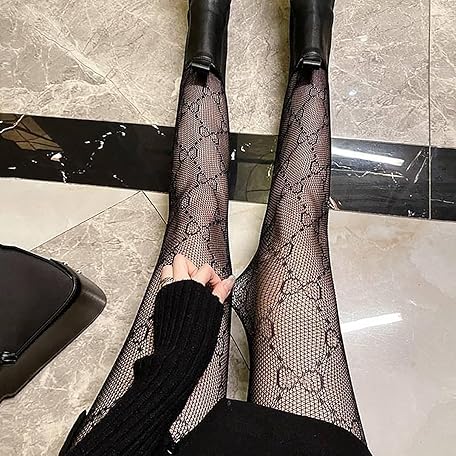 • TISTIPPL Fishnet Stockings Fashion Letter Tights for Women Lace Leggings High Waisted Pantyhose Stockings