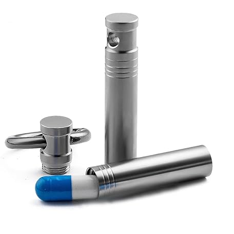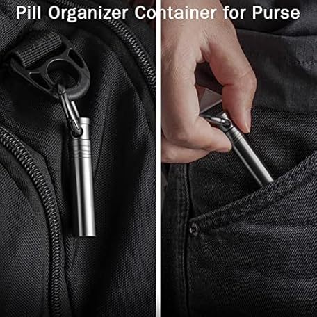 TISUR Small Keychain Pill Holder ,Titanium Metal Travel Pill Case Portable Pill Organizer Container for Purse Waterproof Keychain Pill Holder Medicine Bottle
