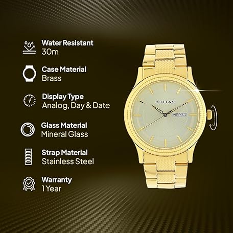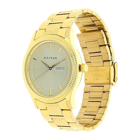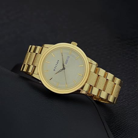 • Titan Analog Champagne Dial Stainless Steel Strap Men's Watch - 1650YM06