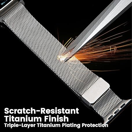Thông tin sản phẩm Titanium Milanese Loop Band Compatible with Apple Watch Ultra 3 2/Ultra 49mm, Series 10/9/8/7/6/5/4/3/SE 44mm 45mm 46mm, Lightweight Magnetic Clasp Mesh Strap for Men and Women